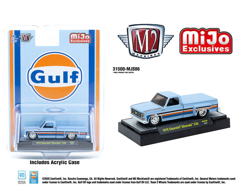M2 Machines 1:64 1978 Chevrolet Silverado 30 Custom GULF – Blue